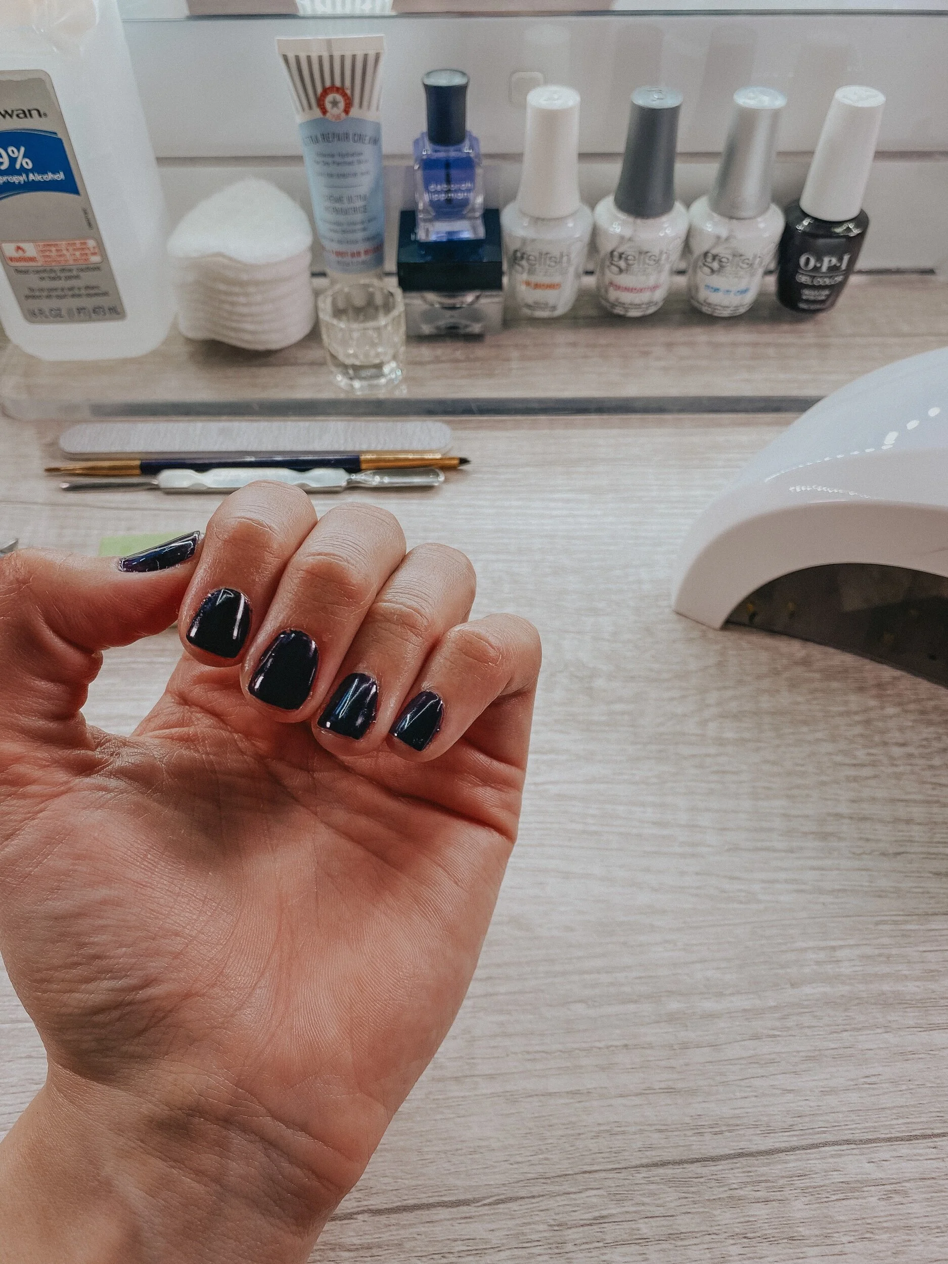Up next is how I do my nails weekly. I’ve transitioned from going to the nail salon every two weeks to every 6-8 weeks. I still get regular pedicures but I have found doing my own gel manicures to be extremely cost effective. I have also gotten better at working with my non-dominant hand thanks to all the practice! I also find that my manicure lasts around a week or so and peels off in one sheet leaving my nails much less damaged then when I get them professionally applied.